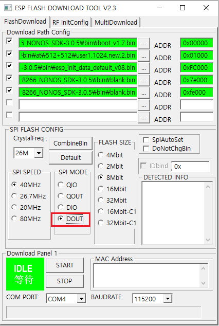 SPI Mode 는 일단 QIO 로 하자. 자세한 설명은 나중에 하도록 하겠다.