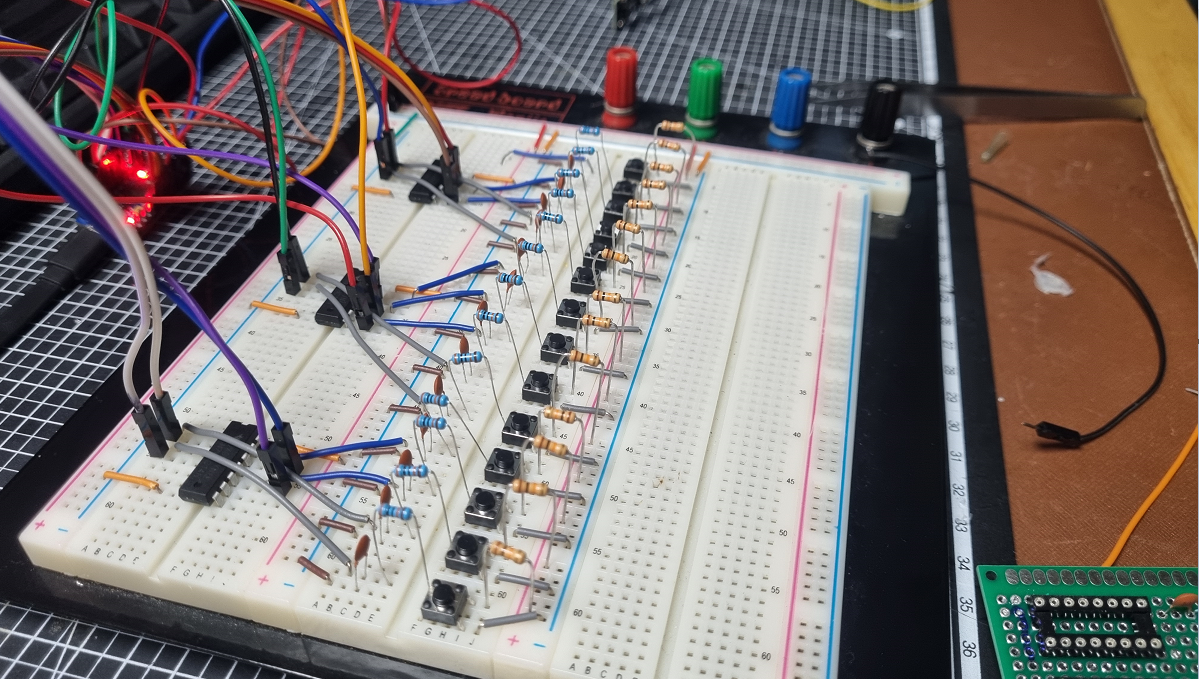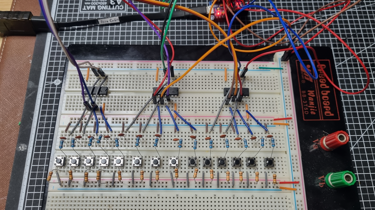 아름답지 아니한가?! 팩토리오에서 공장을 짓듯이 한땀한땀 만들어 보았다. 굳이 14개의 모든 버튼을 만들 필요가 있을까? 있다. 왜냐고? 나는 전자회로/하드웨어에 있어서 브론즈는 커녕 아이언 등급이니까.